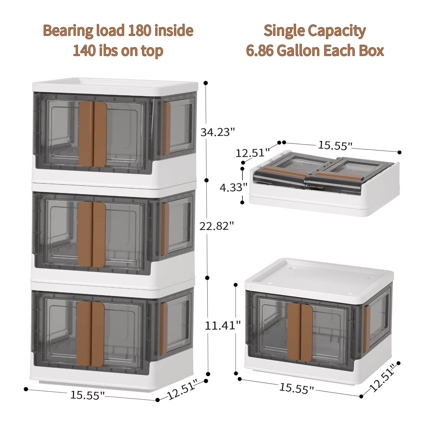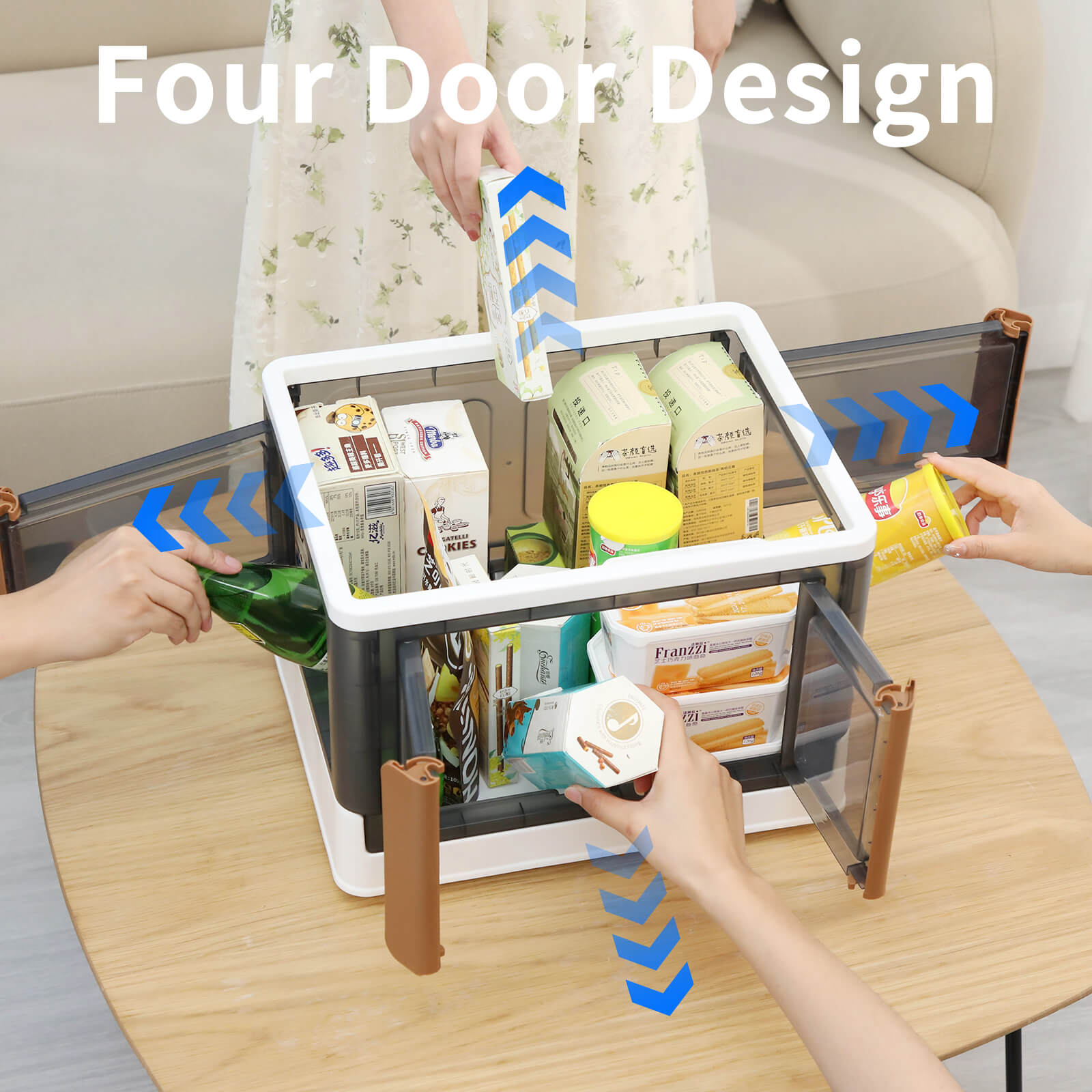 [FOUR OPENING WAYS] HAIXIN 6.86 Gal stackable storage bins feature four door opening options, which can be stored on the front, top, left and right sides. The direction of placing the box is not restricted; it does not take up space when placed horizontally. The front door and both sides of the door come with built-in lock buckles to ensure that the door will not open by itself.