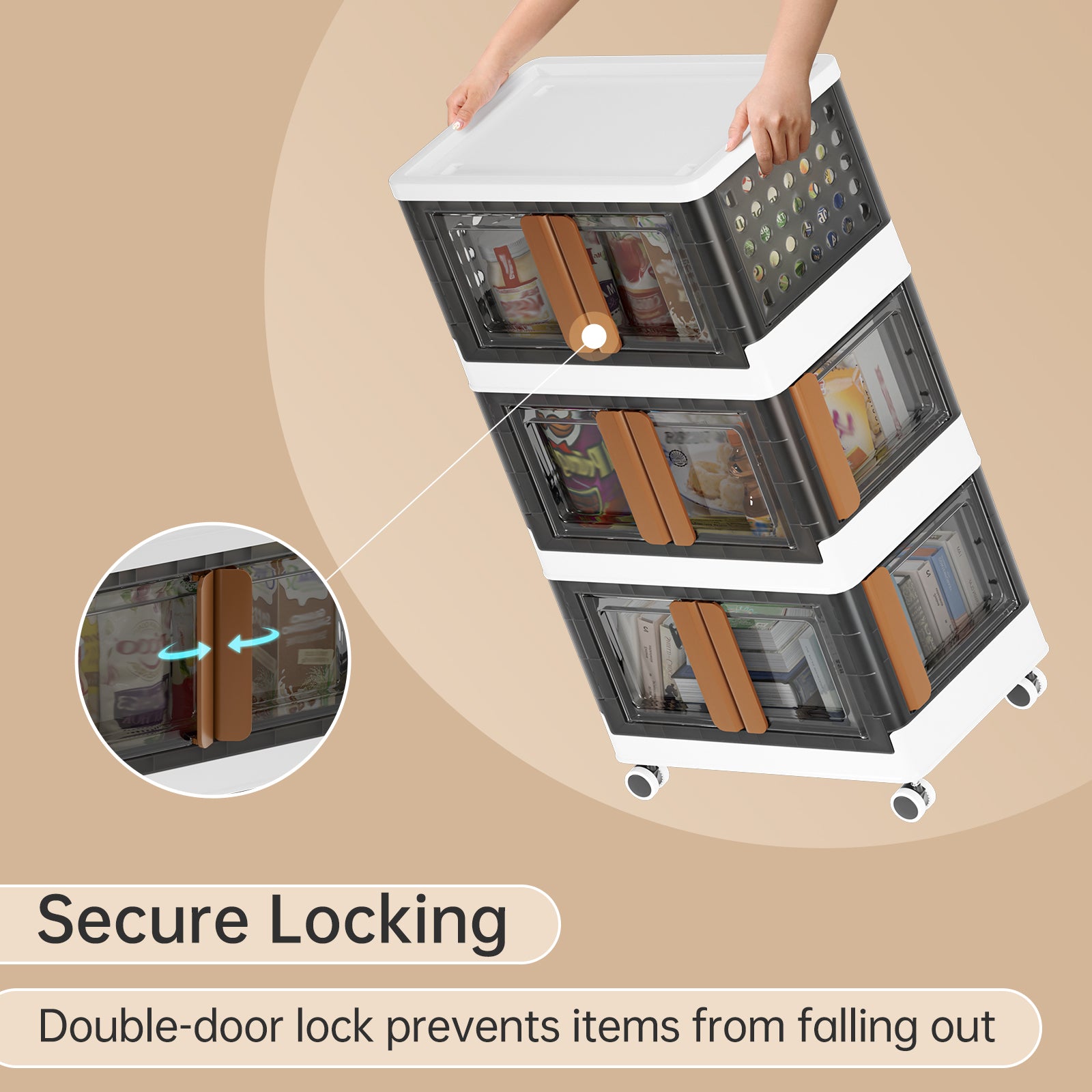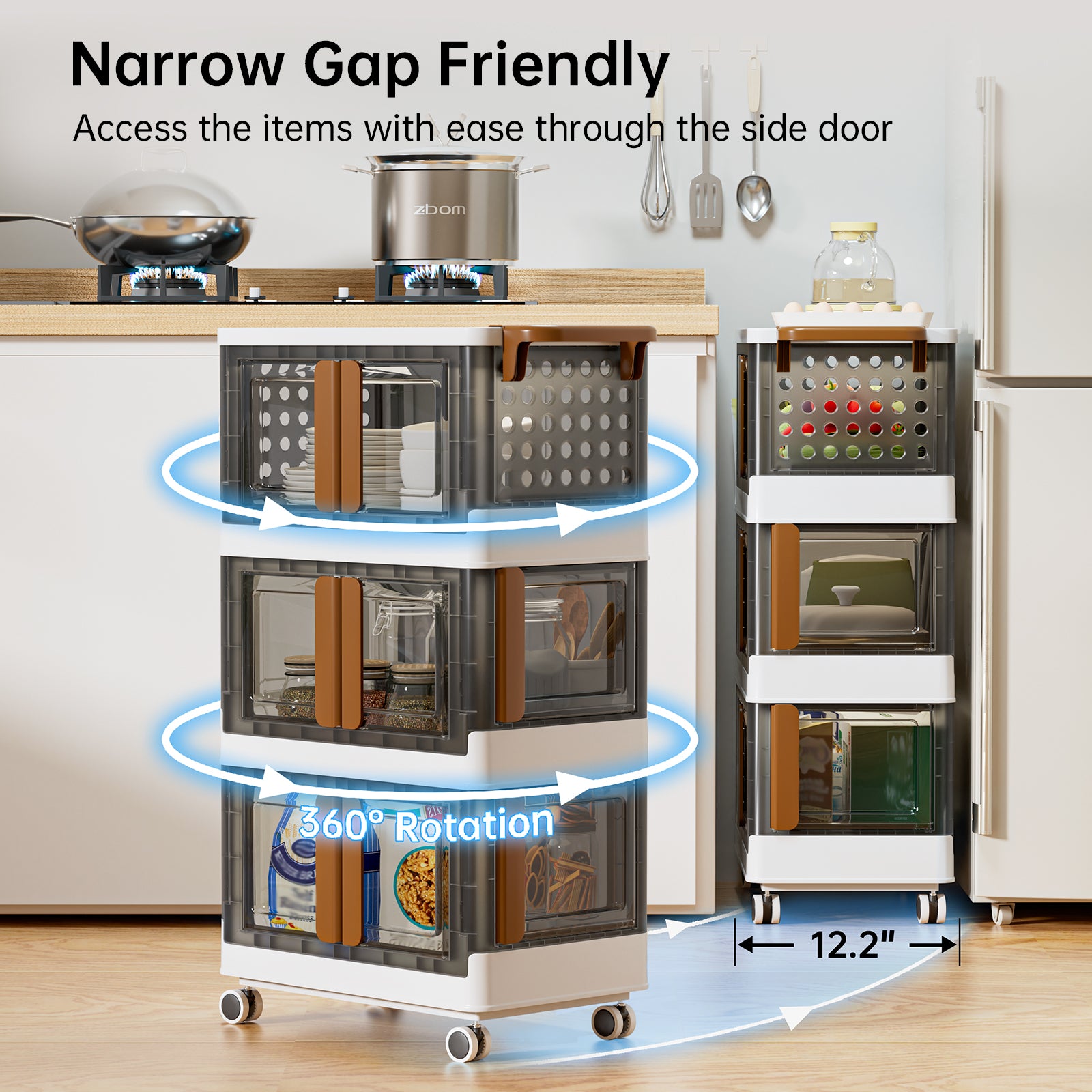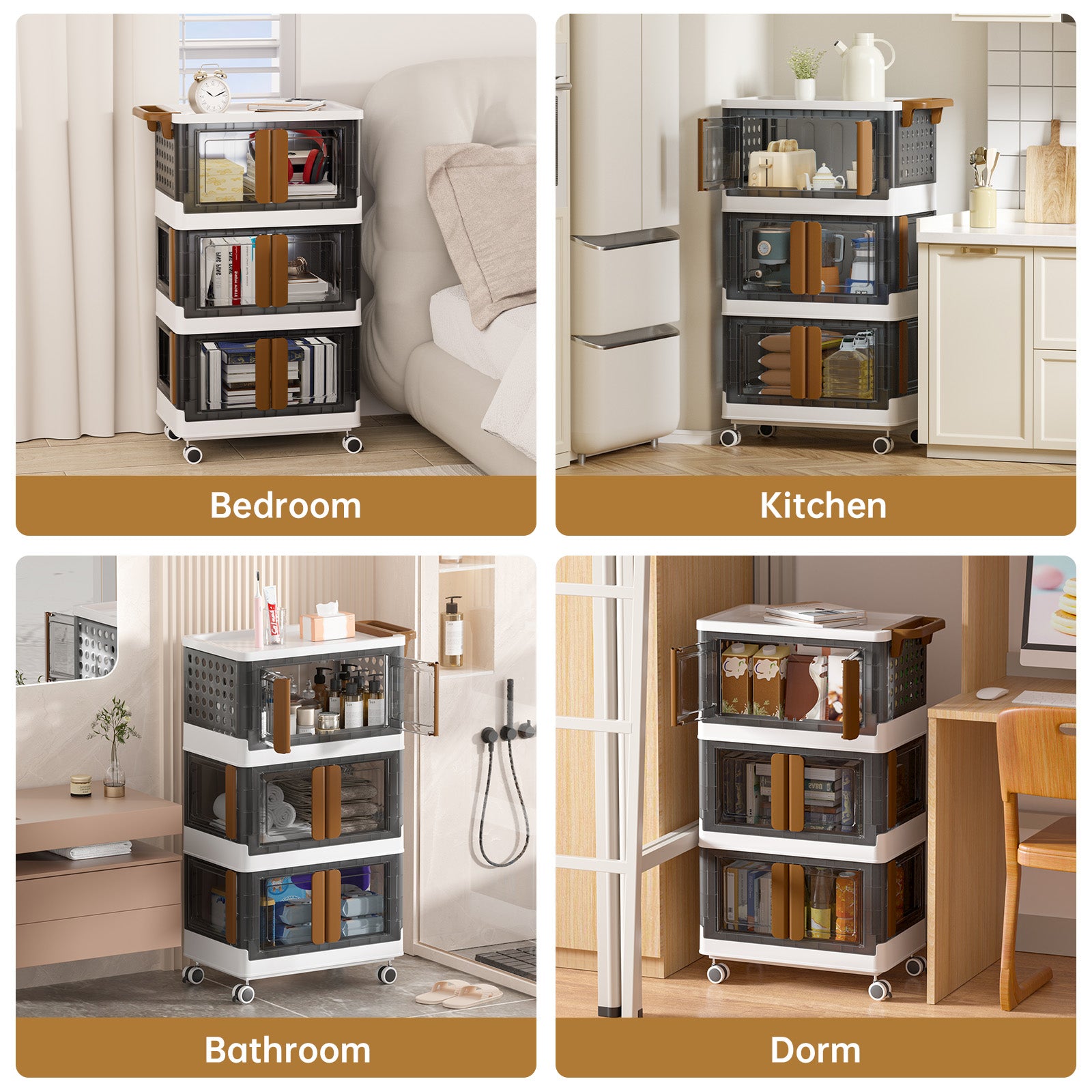 【Four Opening Doors Cart】The rolling cart is able to open in 4 doors. You can easily get what you need from different directions. Every door built in lock buckles, ensure the items inside are not easy to fall. Clear Panel allow you to easily identify the items stored inside and keeps things from being exposed to dust.